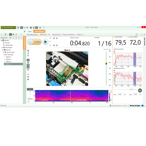 Esta applet requiere una formación estándar de Brüel & Kjær y hardware asociado a LAN-XI, como BK Connect cámara acústica tipo 9712-W-FEN. Es ideal para la localización de fuentes de ruido al momento; mapeo; resultados inmediatos de apunta y dispara y grabaciones de video – en espacios confinados y en sitio.